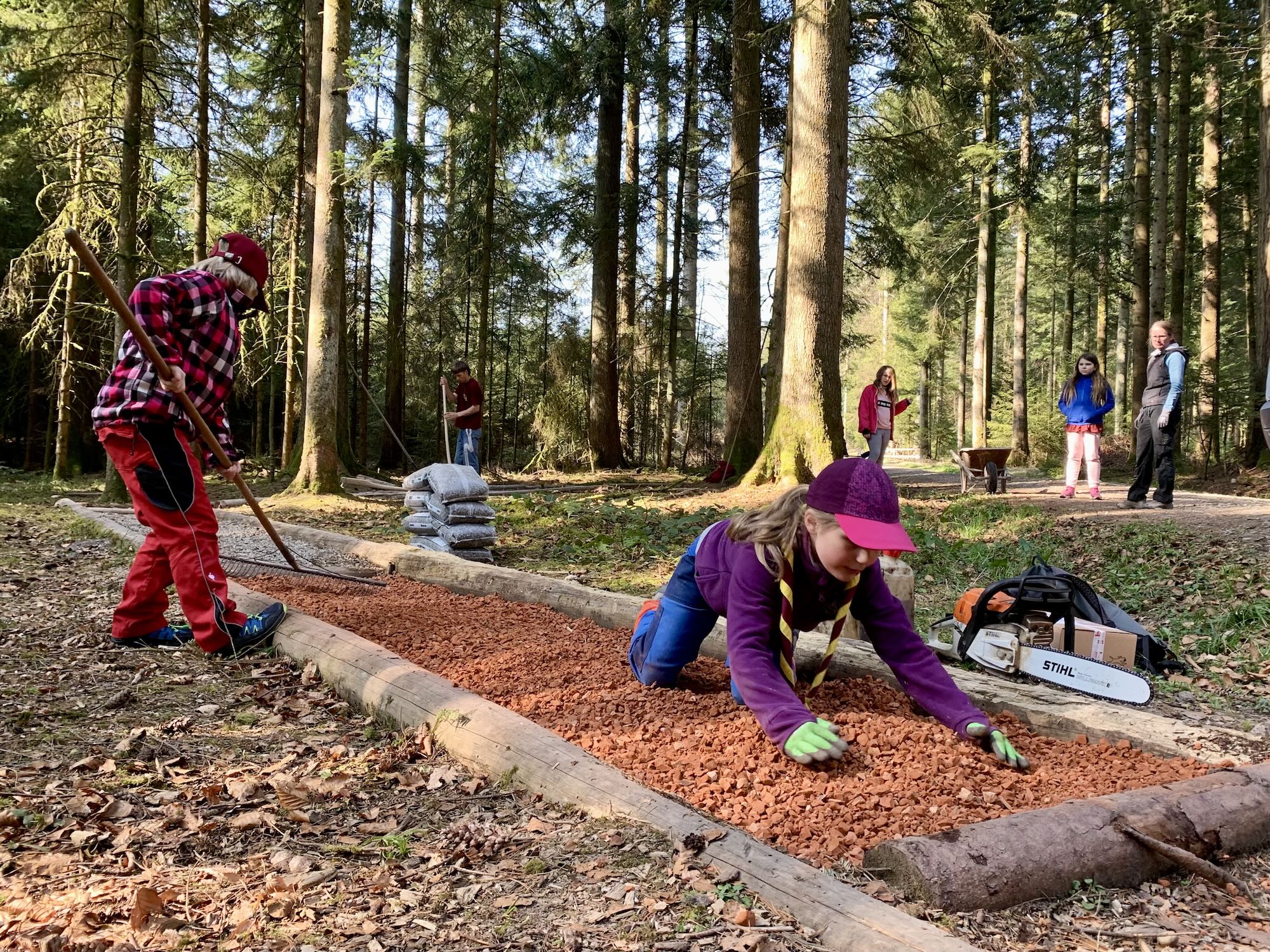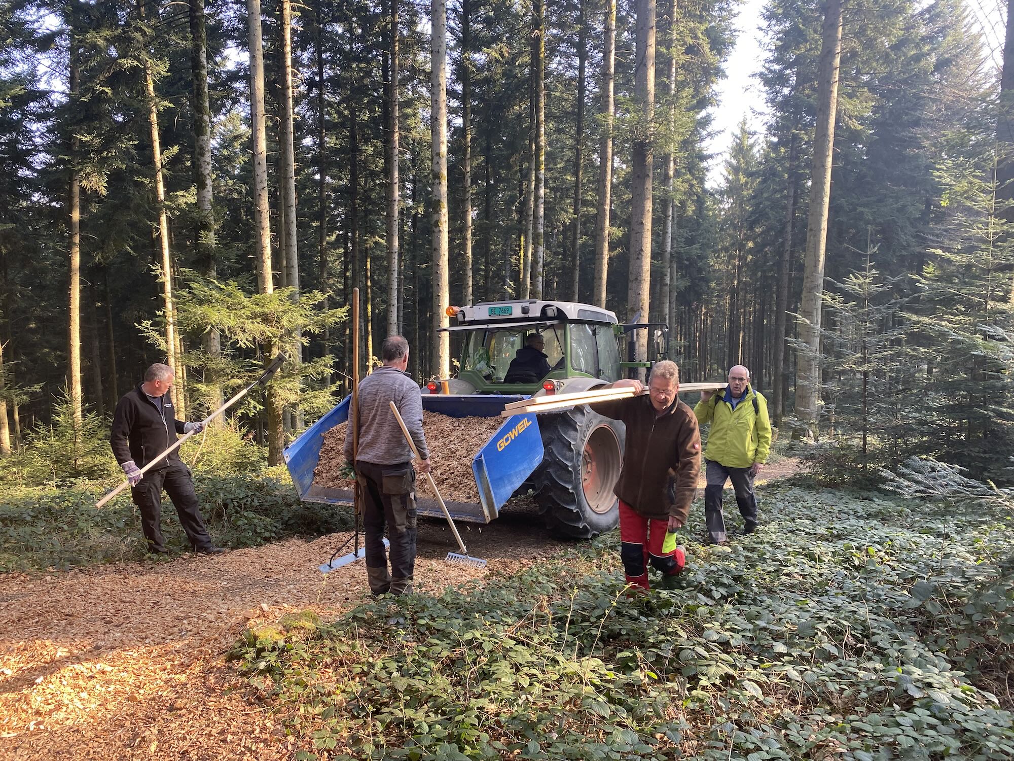 Bei schönstem Frühlingswetter durfte die Burgergemeinde Roggwil den sehr gefreuten Anlass mit der Bevölkerung im Wald durchführen. Gruppenweise wurden neue Hackschnitzel ausgebracht, das verlandete Biotop ausgebaggert und mit einem Vorfluter versehen, die sehr beliebte Marmelibahn repariert, Beschriftungsschilder gewechselt und unter Anleitung von unserem Förster zwei kürzlich bewirtschaftete Waldflächen von Ästen befreit.
