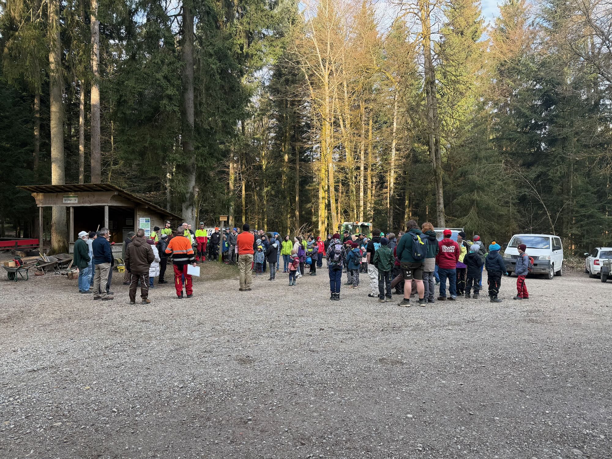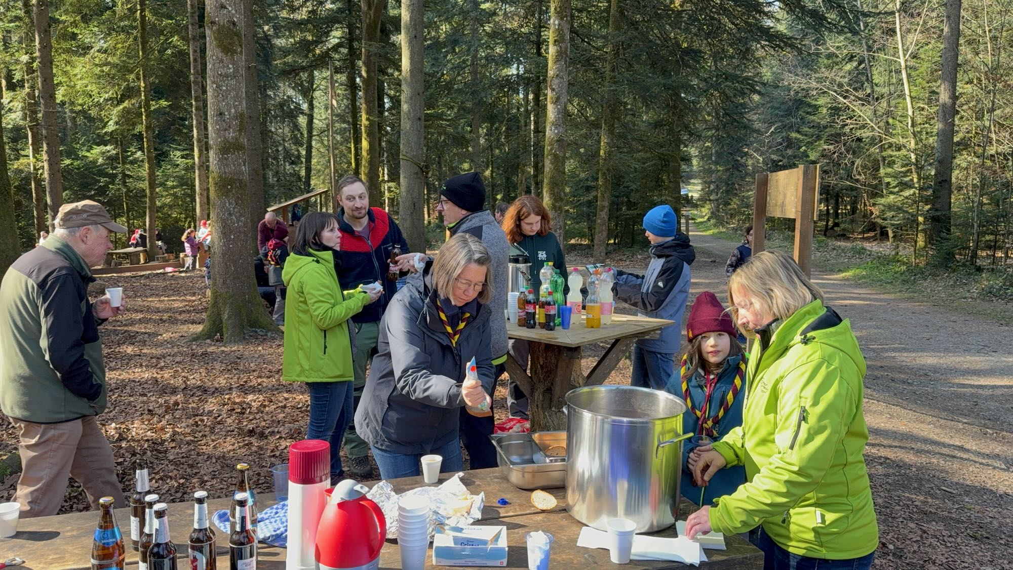 Bei schönstem Wetter versammelten sich am Samstag, dem 21. März ungefähr 100 motivierte Helfende beim Sägelischrüz. Traditionell haben jung und alt in Gruppen den Erlebnispfad repariert, Neophyten bekämpft, Weiden gepflanzt und frisch bewirtschaftete Waldflächen geräumt. Auch Tradition hat natürlich das Znüni um Zehn und Hörnli mit Gehacktem um Eins im Werkhof. Wir haben die Zeit genossen und danken herzlich für euer Mitmachen und den geselligen Tag!
